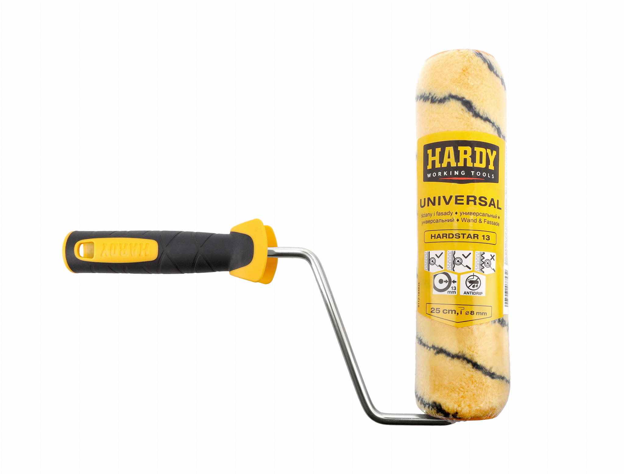 Wałek malarski Hardy Hardstar 25 cm to wydajne narzędzie do malowania dużych powierzchni. Runo o wysokości 13 mm oraz poszycie z wysokiej jakości poliestru zapewniają równomierne krycie farb emulsyjnych, lateksowych i akrylowych.